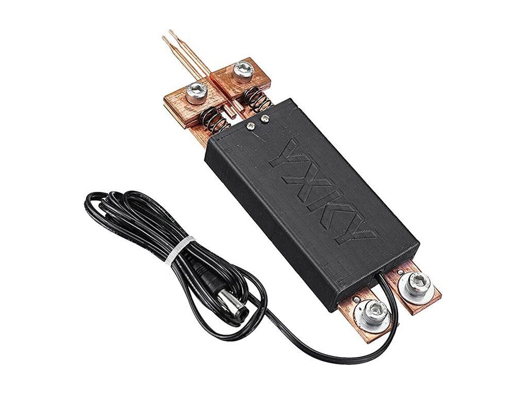 Napětí 4-12V, proud max.800ANástroj je určen pro bodové svařování niklových pásků k pólům akumulátorů. Kovový nástavec s hroty je od tělesa rukojeti pružně uložen a zajistí tak optimální kontakt se svařovanými části baterie. <BR/>Integrovaný mikrospínač sepne proud do kleští až po dosažení požadovaného přítlaku. Součástí nástroje jsou dva hroty (pár) a nástroj pro upevnění. <BR/>**Specifikace:** <BR/>Model HB-70B <BR/>Max tloušťka svarovaného pásku: 0,3mm <BR/>Rozteč kontaktů: 5mm (možno nastavit 3-7mm) <BR/>Kontakty 1,5x27mm <BR/>Délka přívodů: 40mm <BR/>Proud max.1500A<BR/>Kabel 25mm2 <BR/>**Změna nastavení rozteče:** šroubky zboku kleští. <BR/>**Regulace tlaku na hroty:** plastové šrouby na tělese kleštíDoplňkové parametry