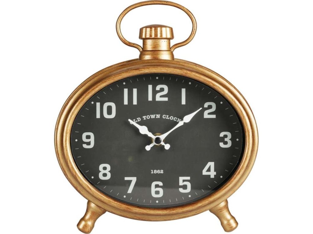 WALL CLOCK OVAL 210X235X48MM, PP MATERIAL, GOLD BODY WITH BLACK DIAL AND WHITE NUMBERS. BATTERY OPERATED 1X AA BATTERY NOT INCLUDED, DETACHABLE BACK SUPPORT/STAND. EACH PIECE IN BLACK WINDOW BOX FIXED WITH SCREWS AND BARCODE STICKER/ 220X55X265MM, Colour box with window (CLBW): WEEE / CFT 1,34,(19.000/40ft HQ)Doplňkové parametry