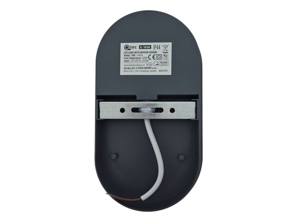 Nástěnné světlo LED Q-181AD QTEC s PIR čidlem, 230V/18W, IP44 Hlavní vlastnosti:Úsporná LED technologie – příkon 18W, světelný tok 1440lm