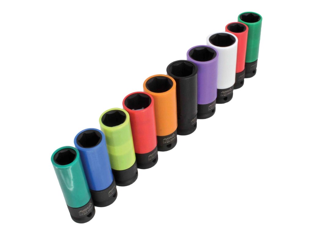 Praktická sada s ochrannou krytkou proti poškrábání nebo ťuknutí litých ALU kol. Kovaná z chrom-molybdenové (Cr-Mo) oceli, vhodná i na rázové utahováky/povolováky.