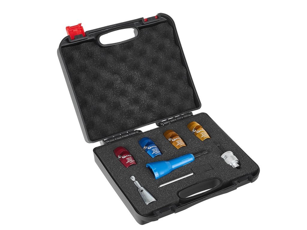 Pěnová vložka uvnitř pouzdra chrání jednotlivé komponenty sady před poškozením během transportu a zároveň zajišťuje, že vše zůstane na svém místě.
