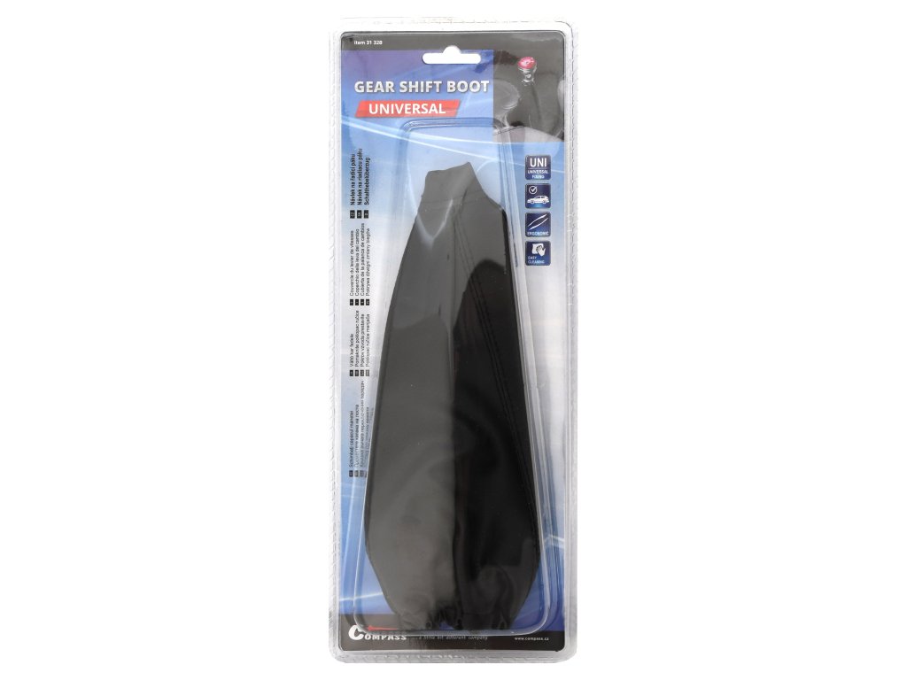 Návlek má výšku 23 cm, spodní část je opatřena všitou gumou pro perfektí přilnutí k panelu řazení. Vrchní část je opatřena suchým zipem a šnůrkami pro důkladné přichycení pod hlavici řadící páky. Návlek tak lze přizpůsobit většině tvarů a konstrukcí řazení u osobních automobilů.