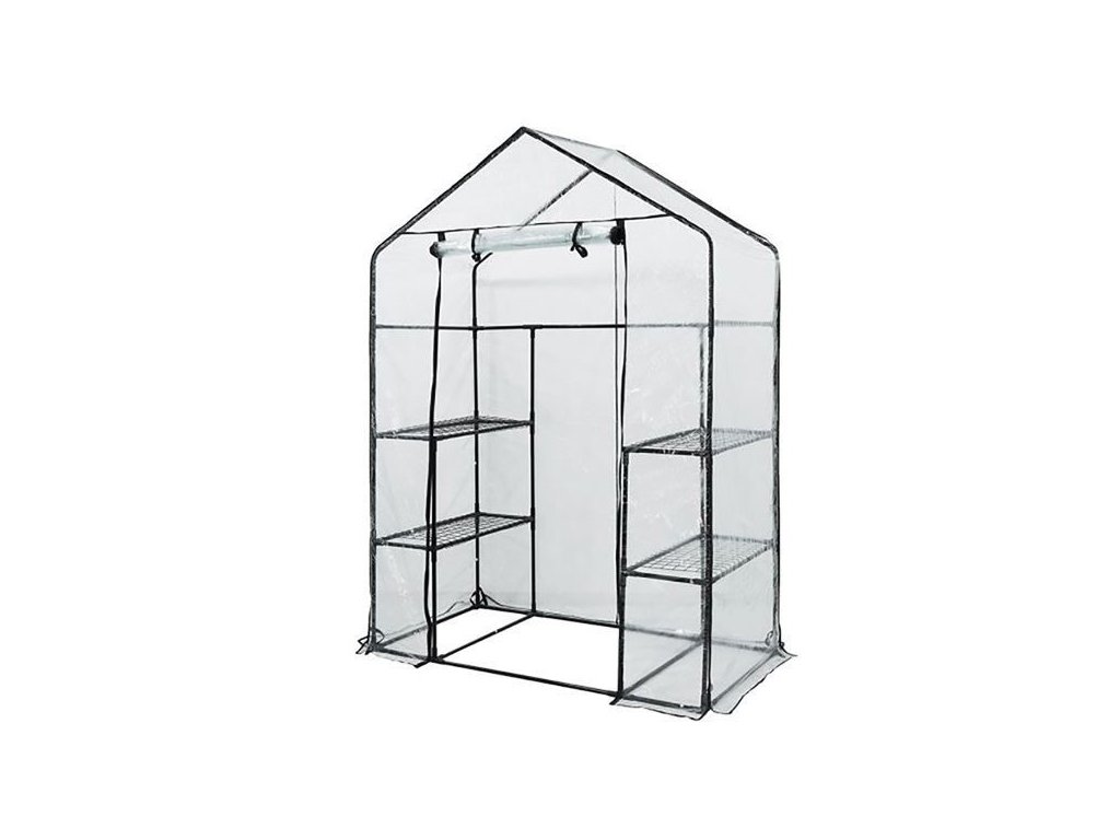 NEO TOOLS Skleník, PVC fólie, kovová konstrukce, 143x73x195 cmPro použití doma i mimo dům skleník s kovovou konstrukcí a PVC fólií značky NEO. Vyznačuje se rozměry 143 x 73 x 195 cm. Má čtyři praktické police, které vám umožní vměstnat více rostlin do podobného prostoru. Skleník nabízí výborné podmínky pro růst bylinek, malých sazenic zeleniny a ovoce. Zapíná se pohodlně na zip - navíc má i možnost srolování přední stěny.