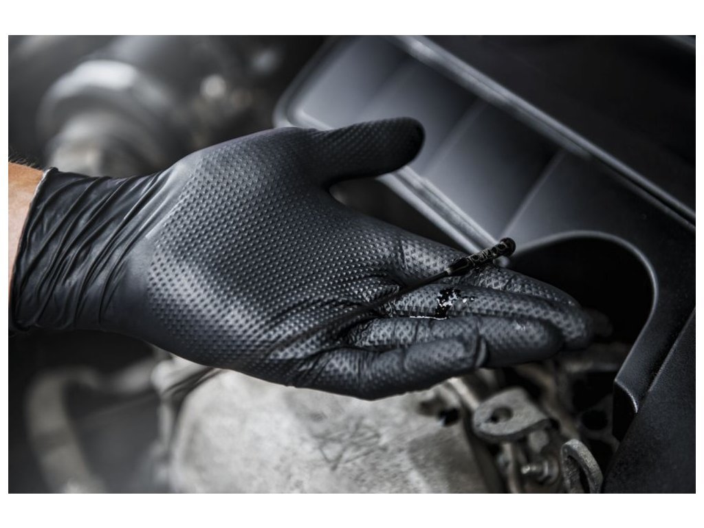 Revoluční rukavice v černé barvě s diamantovou texturou, která zajišťuje vynikající úchop a ochranu rukou při práci v náročném prostředí. 3D textura zároveň umožňuje cirkulaci vzduchu uvnitř rukavice a poskytuje tak dodatečný komfort při práci. Rukavice splňují normy pro práci s potravinami a jsou odolné vybraným chemickým látkám. Nitrilové rukavice jsou perfektní pro uživatele s citlivou pokožkou či pokožkou náchylnou k alergiím, protože neobsahují latexové proteiny.