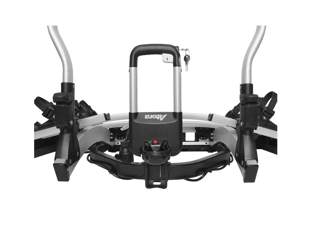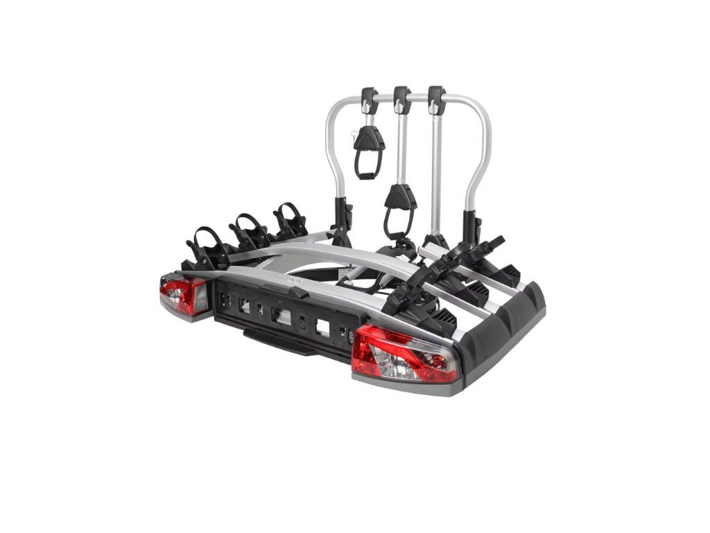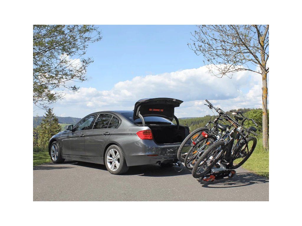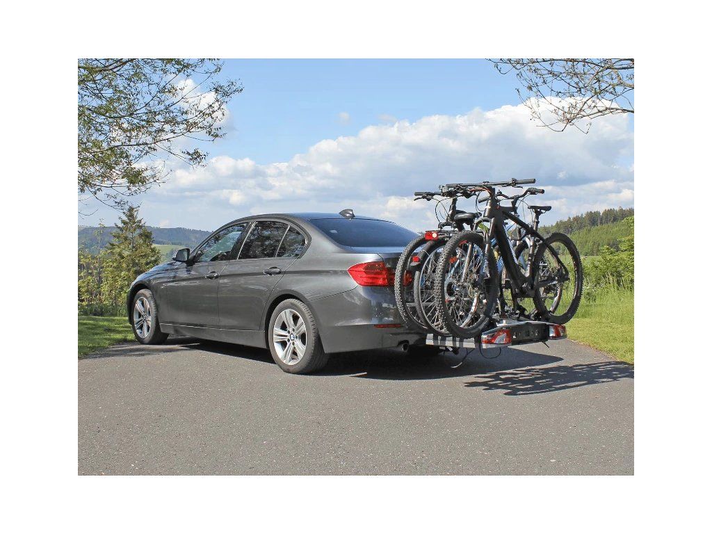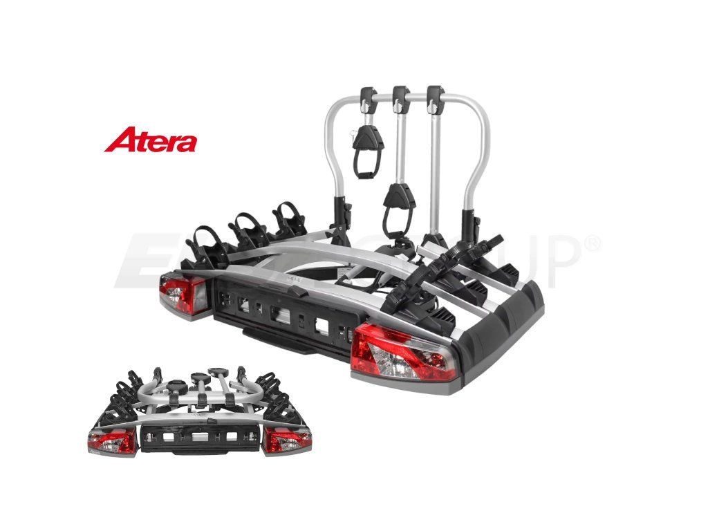 Kompaktní nosič kol s maximálním komfortem. Atera Strada EVO 3 je kompaktní, stabilní a mimořádně bezpečný nosič jízdních kol s maximálním komfortem. Nosič lze rychle namontovat na téměř všechna tažná zařízení. S tímto nosičem kol můžete snadno a bezpečně přepravovat 3 jízdní kola. Čtvrté jízdní kolo lze přepravovat s nástavbou. Pro optimální držení jízdního kola a ochranu rámu kola je držák opatřen gumovými vložkami. Držáky jsou ideální i pro velké průměry rámů, až do 80 mm. Držák pneumatiky lze optimálně přizpůsobit vaší pneumatice. U vozidel řízených datovou sběrnicí je třeba po připojení nosiče zkontrolovat správnou funkci systému osvětlení. Nosič Atera Strada EVO 3 lze složit pomocí hladce se pohybujícího válečkového výsuvu i při zatížení. Kromě toho má nosič jízdních kol také boční ochranný kryt proti podjetí a odnímatelné distanční prvky. Zadní dveře různých dodávkových vozidel lze snadno otevřít. Tento nosič jízdních kol je vybaven 13kolíkovou zástrčkou. Vezměte prosím na vědomí, že v některých zemích EU je pro použití nosiče jízdních kol vyžadována také 13kolíková elektrická sada (například v Německu a Rakousku). Výrobce: Atera