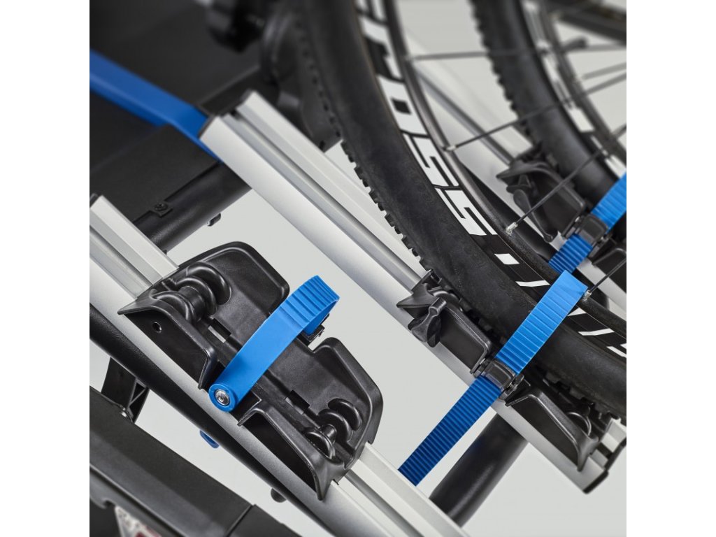 Rychlé uchycení kol pomocí nastavitelných plastových dílů a rychloupínacích popruhů.