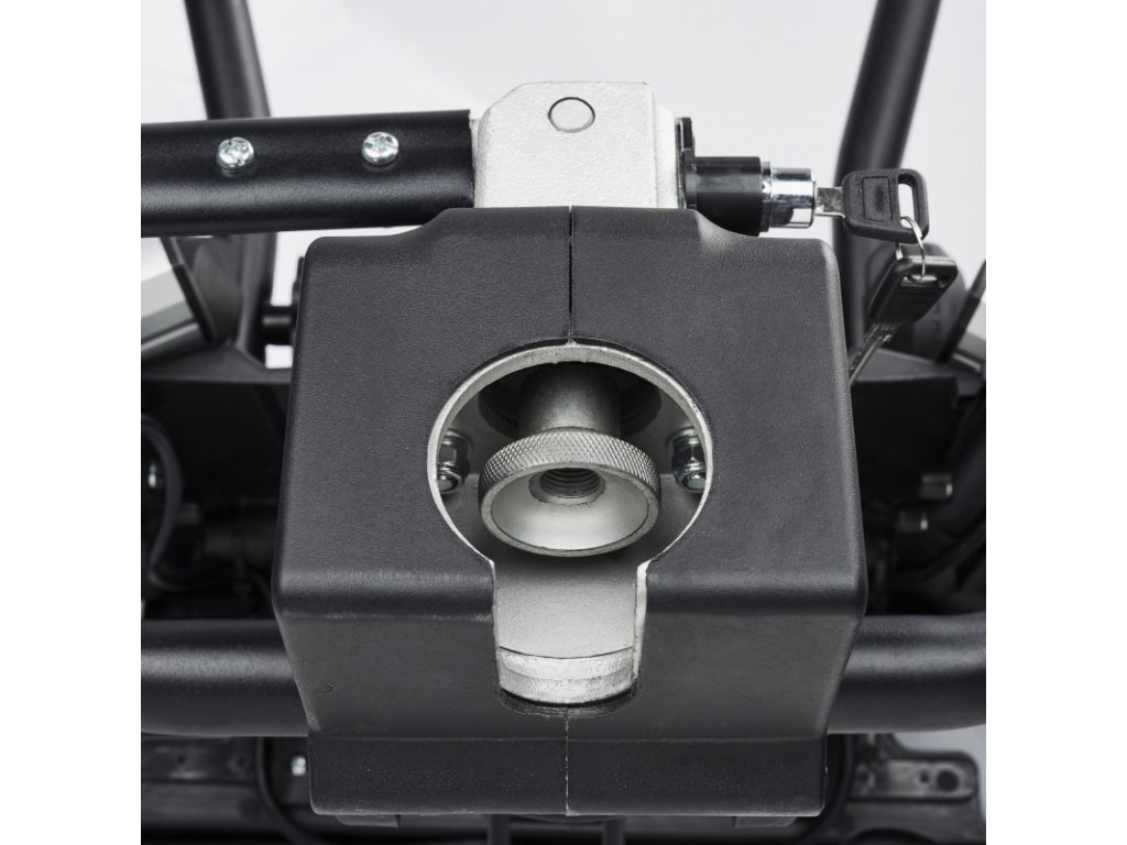 Nosič je sklopný pomocí pedálu, což umožňuje snadný a rychlý přístup do zavazadlového prostoru i s upevněnými koly.
