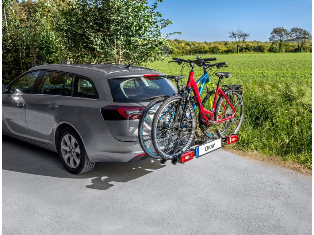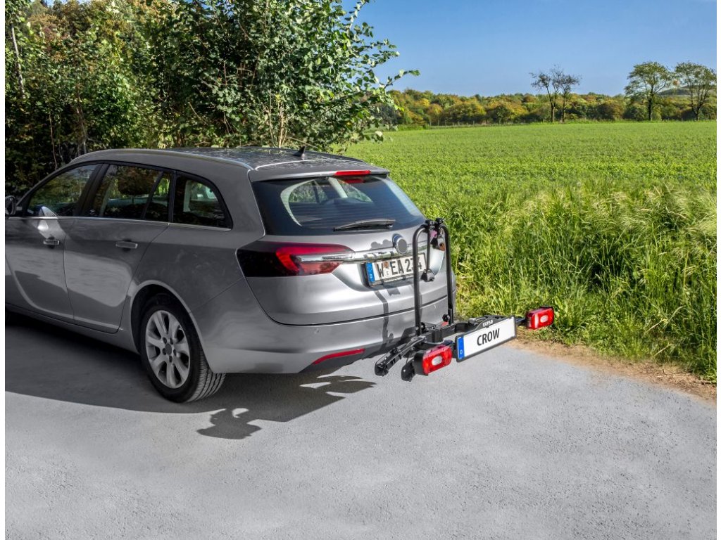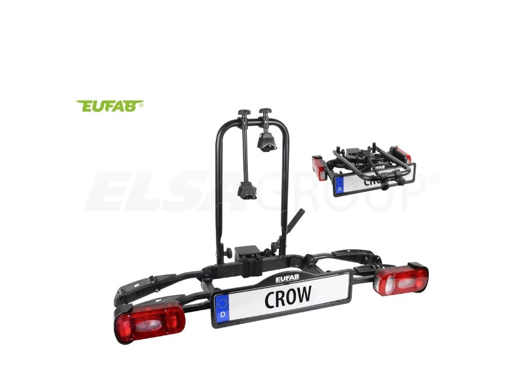 Rychlé a snadné automatické upevnění nosiče na kulový čep. Kompletně uzamykatelný, vybavený držákem registrační značky. Jednoduše sklopný pro snadný přístup do kufru vozu i s naloženými koly a skladný pro úsporu místa při jeho skladování. Nosnost až 50 kg umožňuje přepravu elektrokol. Nosič kol Crow Plus od výrobce Eufab je bezpečný, kompatkní a kvalitní nosič kol, který se snadno montuje i používá. Nosič dvou kol lze rozšířit o přídavný držák třetího kola. Kola se k nosiči uchycují pomocí textilních popruhů. Nosič je dodáván v částečně smontovaném stavu. Další údaje: Rozměry