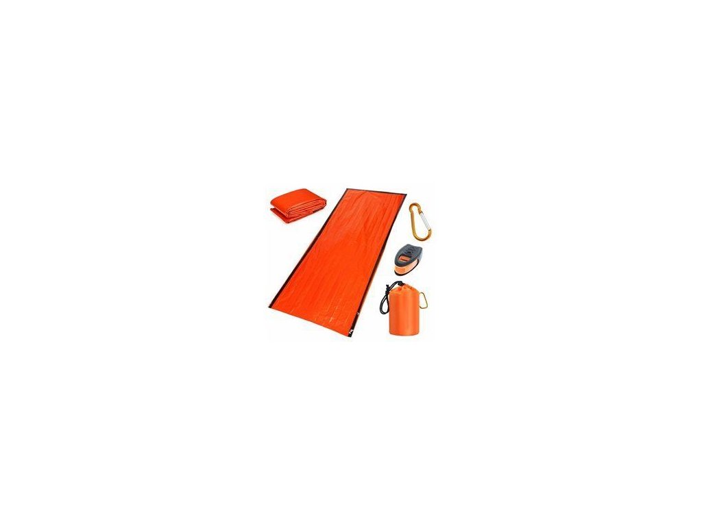 Rozkládací nouzový spací pytel z tepelně odolného plastu.<BR/>Perfektní řešení pro turistiku, horolezectví a záchranářství.<BR/>Použitý materiál je voděodolný, dokonale izoluje proti chladu, větru a drsnýmpovětrnostním podmínkám.<BR/>Zabraňuje prochladnutí organismu v extrémním počasí.<BR/>Kompaktní taška usnadňuje přenášení a lem je vybaven hlasitou píšťalkou, která vám umožní slyšet nás na dálku.<BR/><BR/>Specifikace:<BR/>- Materiál: plast (polyethylen)<BR/>- Rozměry (taška): 10,5 cm x 7 cm<BR/>- Taška je vybavena lemem a záchrannou píšťalkou<BR/>- Délka: 213 cm<BR/>- Šířka: 91 cm<BR/>- Oranžová barva<BR/>Doplňkové parametry