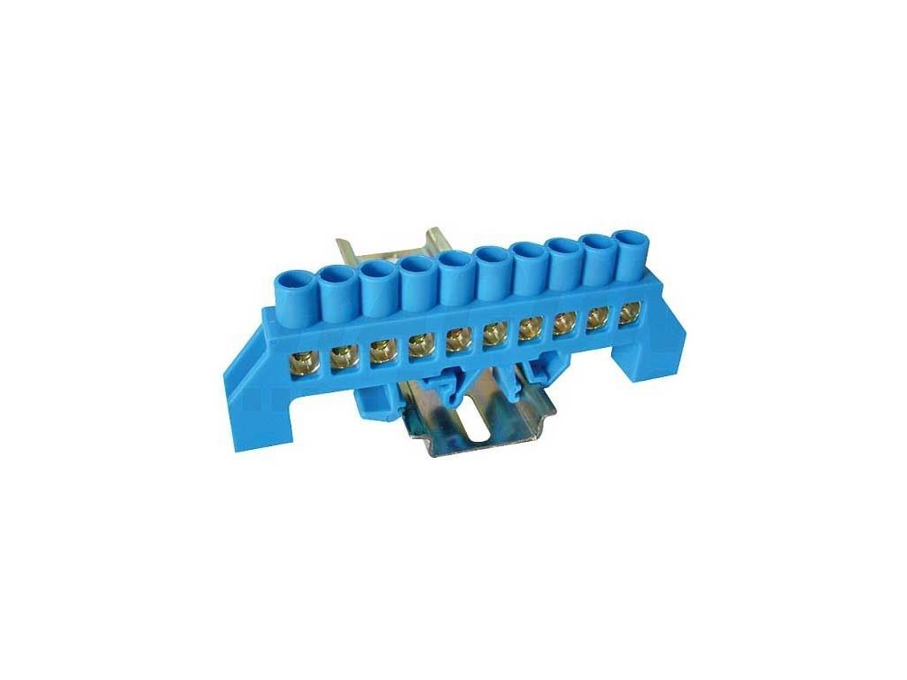 Nulovací můstek na DIN lištu FT033 10pólů modrý izolovaný **Specifikace:**Materiál obalu: Polyamid PA66