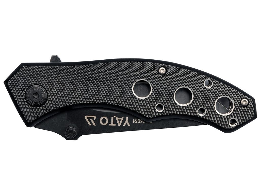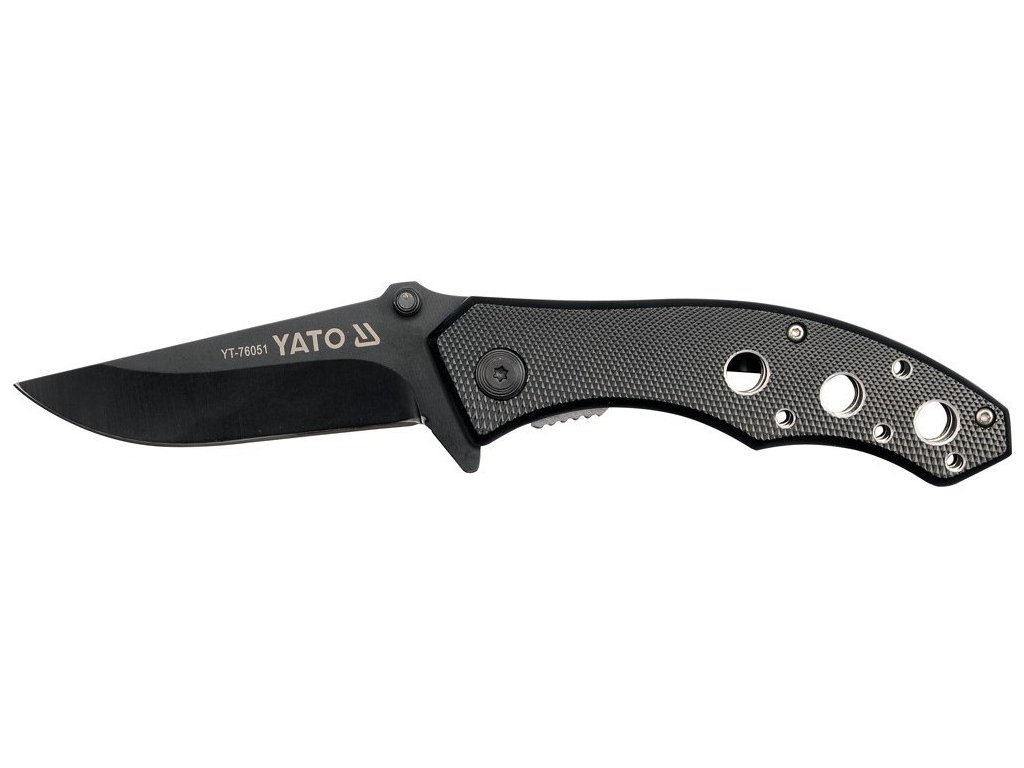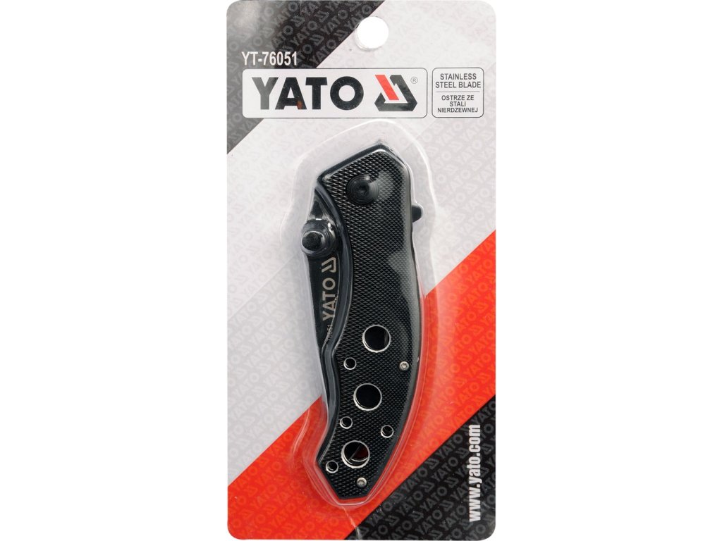 Nůž je určen především pro milovníky nožů a fandy značky Yato. Čepel je zhotovena z kvalitní nerezové oceli, lakované do matné, černé barvy a je vybavena výstupky z vrchní i spodní strany, zamezující sklouznutí ruky a možného poranění při používaní.