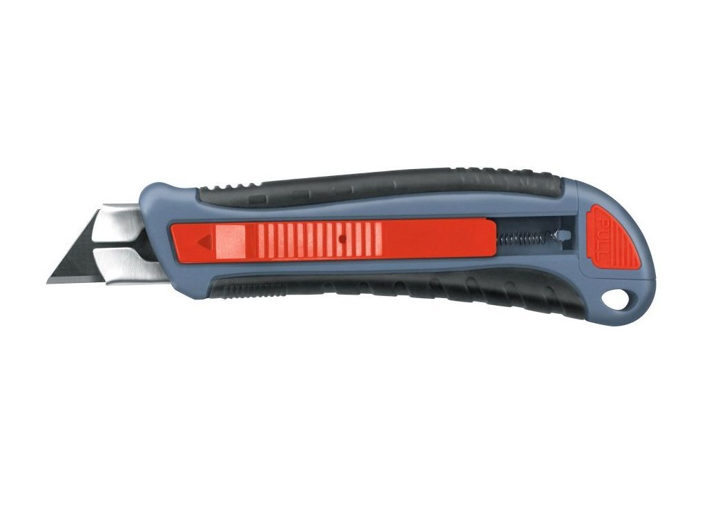 - bezpečnostní pružinový mechanismus automatického zasunutí břitu po uvolnění přítlaku palce na tlačítko vysunovače