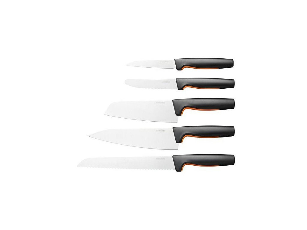 Velká startovací sada Fiskars Functional Form obsahuje pět základních nožů pro každodenní přípravu pokrmů, které se snadno udržují