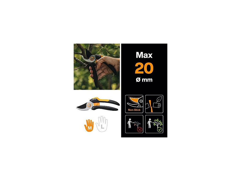 Vhodné pro čistý hladký řez čerstvých větví do průměru 20 mm.