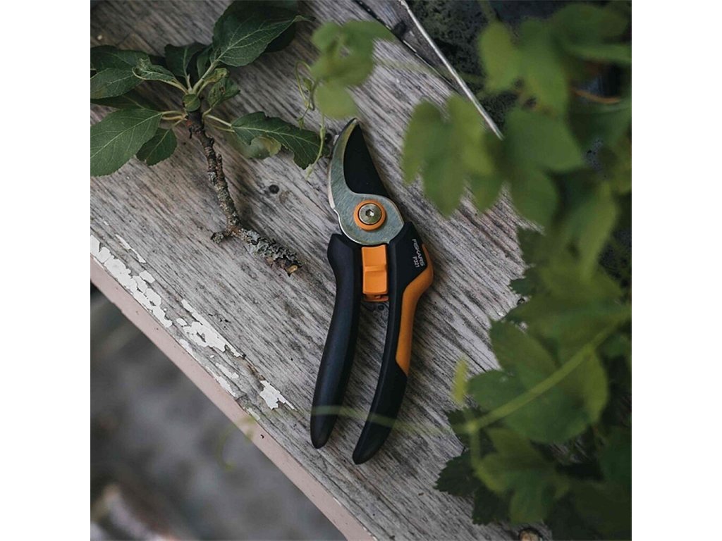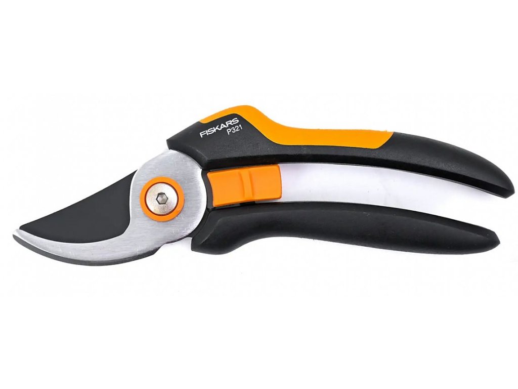 Dvoučepelové zahradní nůžky Fiskars Solid P321 mají kalené a přesně broušené ocelové čepele.