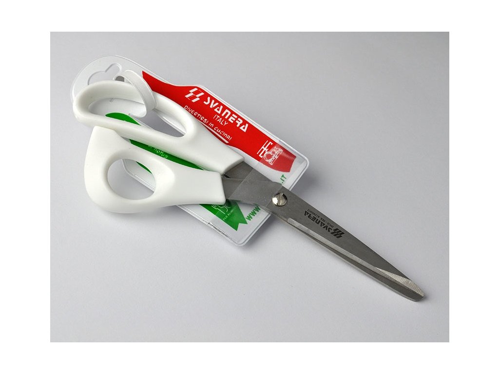 Kvalitní nerezové nůžky s plastovými rukojeťmi, délka celkem 22 cm, atestované pro styk s potravinami, vhodné do myčky nádobí.Díky atestu na potraviny je možné nůžky používat v kuchyni.