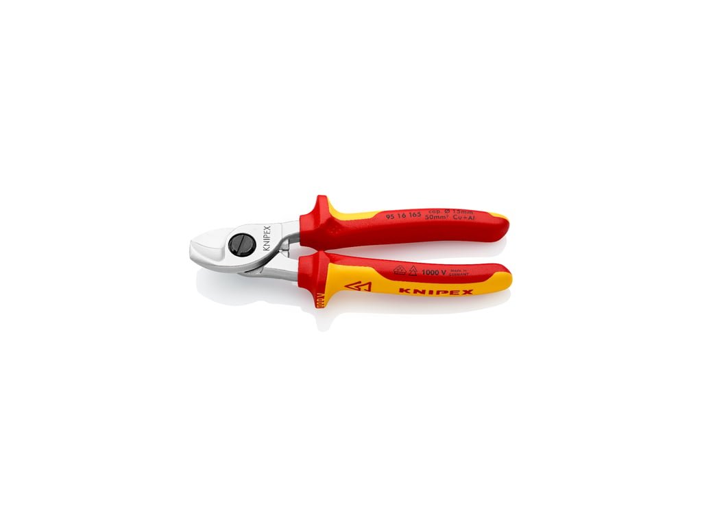 Izolované nůžky na kabely, elektrikářské VDE 1000 V, pro vodiče do průměru 15 mm – Knipex 95 16 165