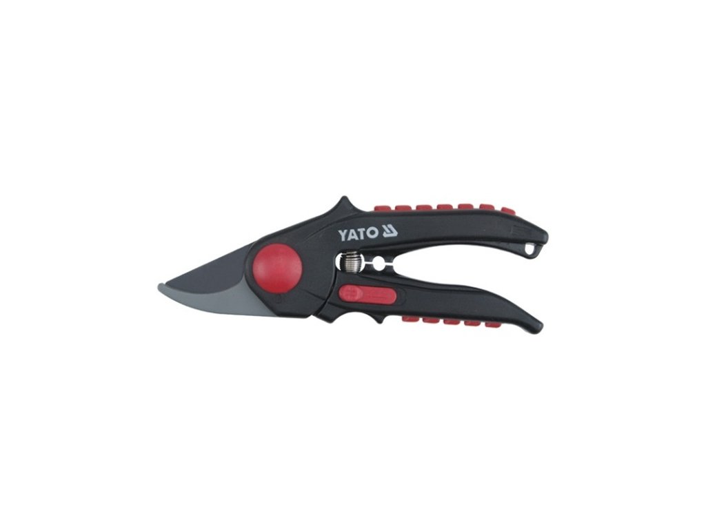 Ruční zahradní nůžky,čepel z Japonské ocely SK5 ostří potažené PTFE se šikmým střihem o celkové délce 190 mm průměru střihu do 15mm, určené ke střihu větví či jiného rostlinného materiálu s protiskluzovou rukojetí pro bezpečné držení.