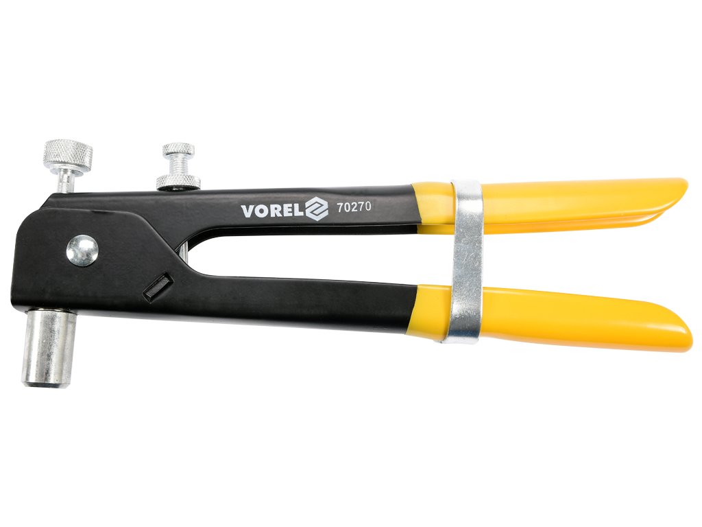 Ruční nýtovačka pro nýtovací matice M3-M6 od firmy Vorel 70270. Vyrobeno z odolné nástrojové oceli. Povrch s práškovým nástřikem.