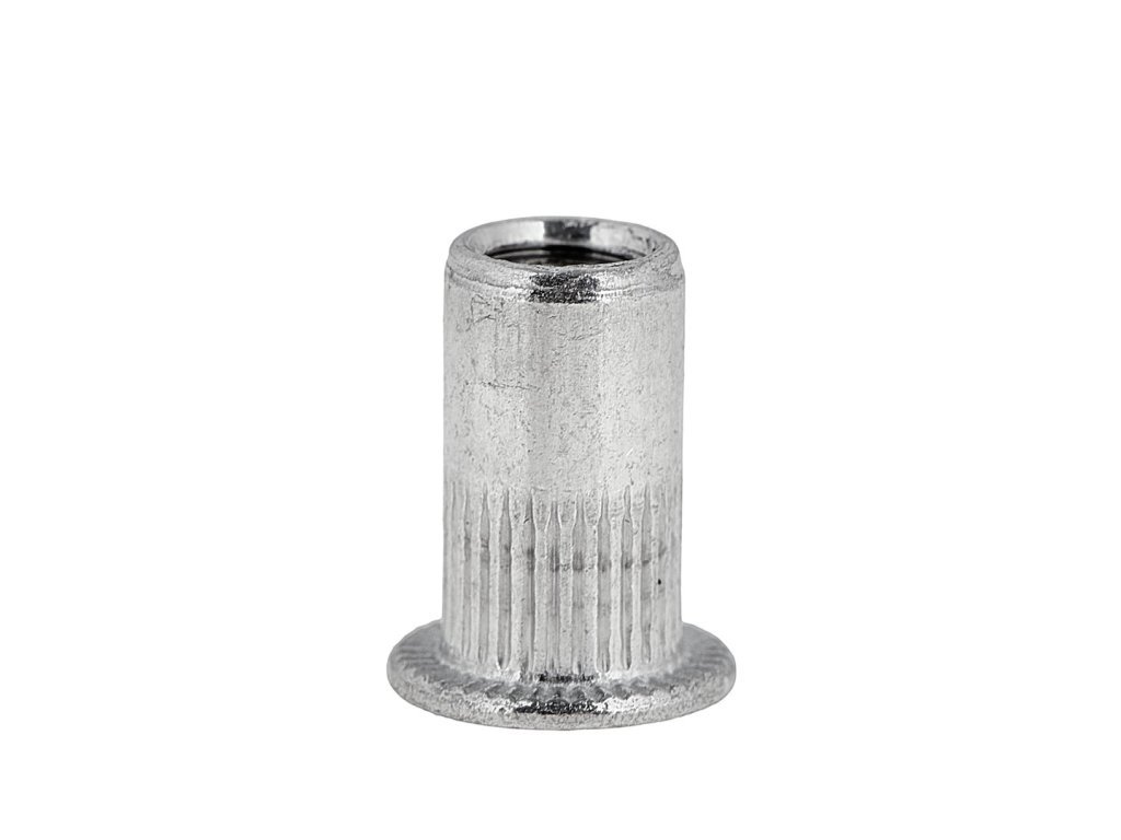 Hliníkové nýtovací matice M5 pro vytváření trvalých závitových spojů v místech, kde není dostupná zadní strana materiálu. Balení 50 kusů kvalitních matic s válcovým tvarem a plochým límcem, určených pro materiály o tloušťce stěny 0,5–2,5 mm.