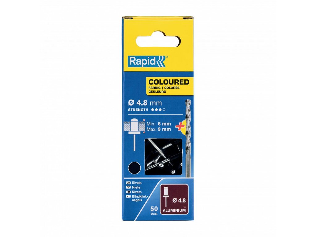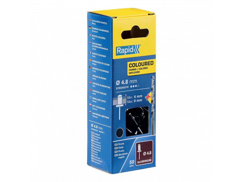 Nýty černé Rapid pr. 4,8x12mm, 50ks + vrták