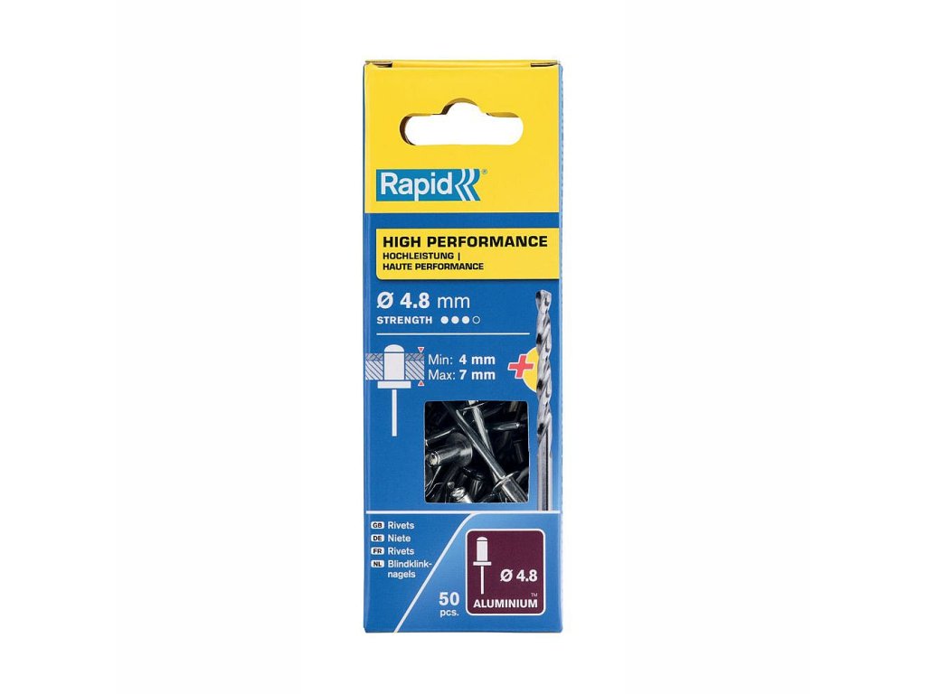 Nýty hliníkové Rapid 4,8x10mm, 50ks+vrták