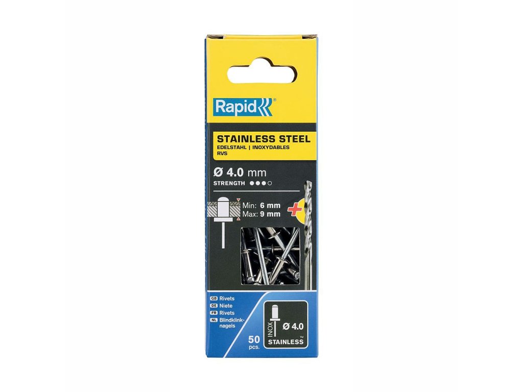 Nýty nerezové Rapid 4x12mm, 50ks+vrták