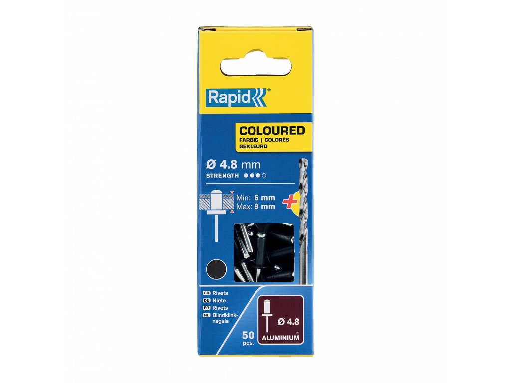 Nýty šedé Rapid pr. 4.8x12mm, 50ks + vrták