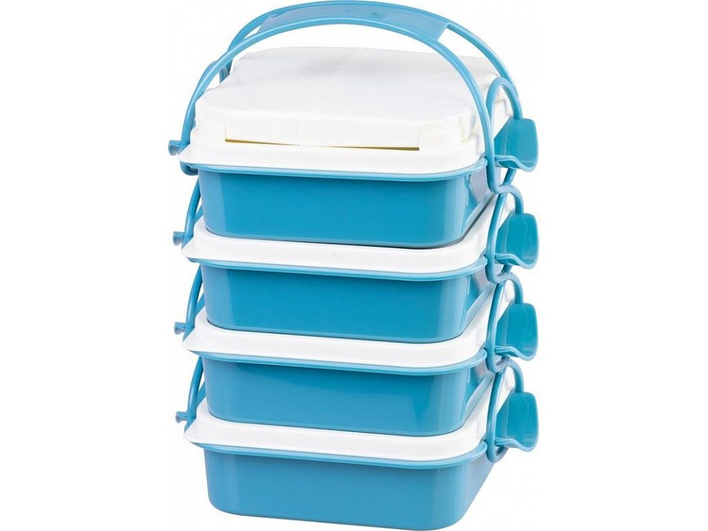 Obědník hranatý MagicHome, 4 dílný, s příborem, 4x0,8 lit., 16x19,5x26 cm