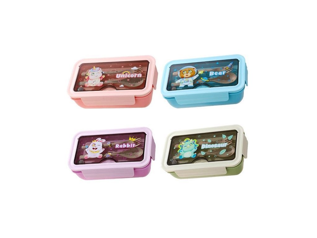Obědový svačinkový box s přihrádkou na příbory Unicorn, modrý Nádoba má dvě přihrádky , takže můžete oddělit různé přísady a vyhnout se jejich smíchání.Sada obsahuje lžíci a vidličku , které jsou uloženy ve speciálním krytu nádoby.