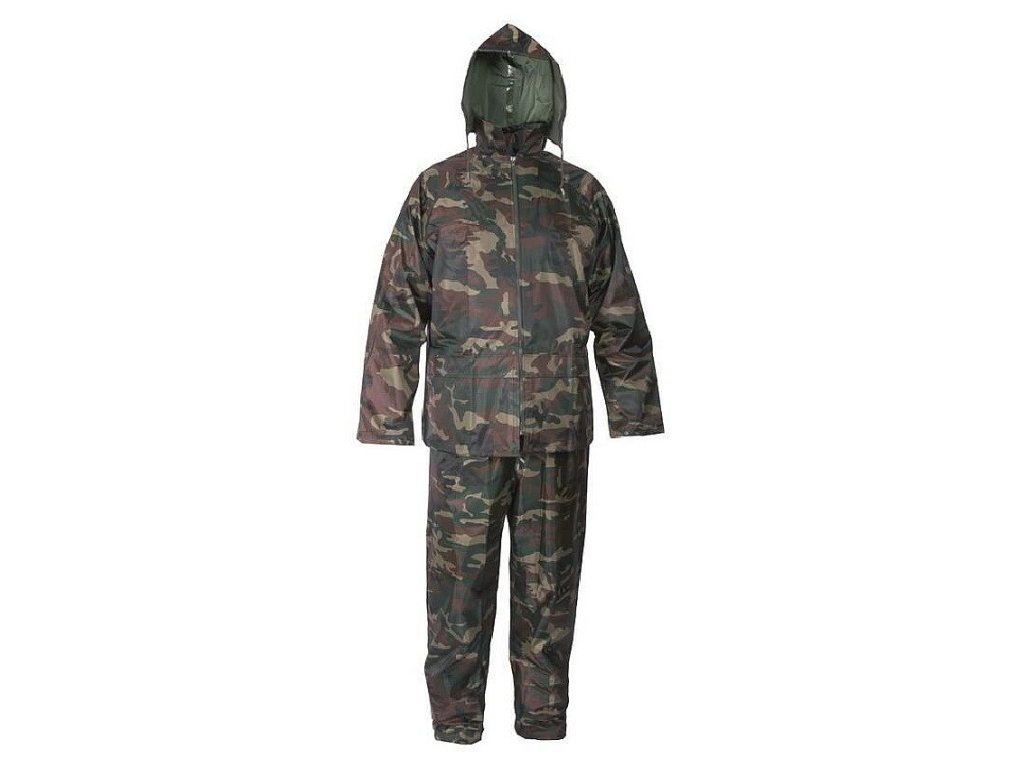 Nepromokavý oděv do deště s kapucí v límci, nižší hmotnost. Zapínání na zip, stahování v dolním okraji, větrání na zádech a v podpaží, kalhoty v pase do gumy, lepené švy. Praktické balení na zip.