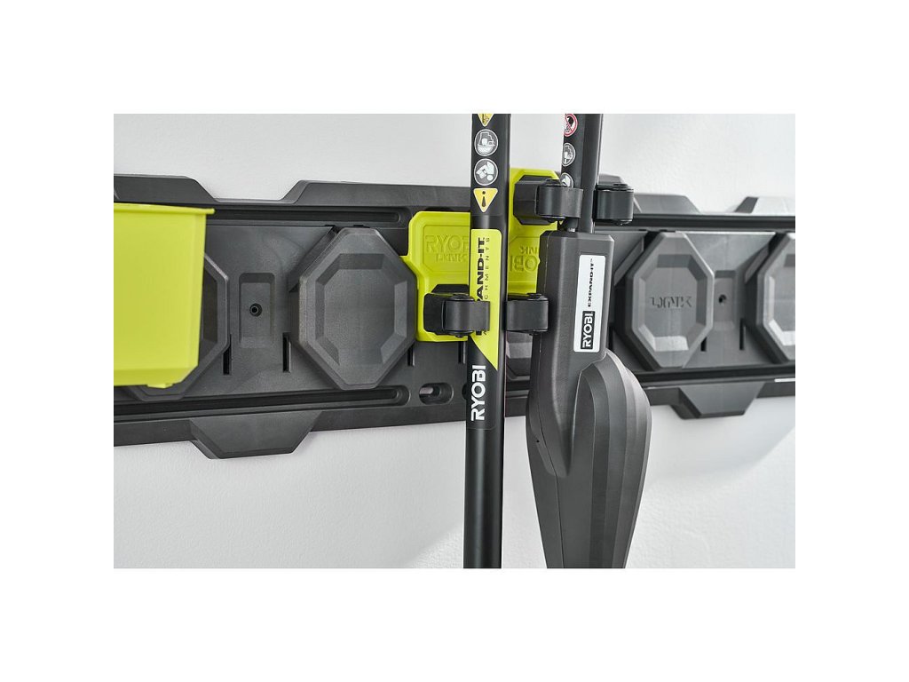 Oboustranný svěrkový držák je určený k uložení různých typů ručního zahradního nářadí, košťat nebo venkovního nářadí s kulatou násadou a pasuje do horní části závěsné lišty nebo mezi připojovací body závěsné lišty.
