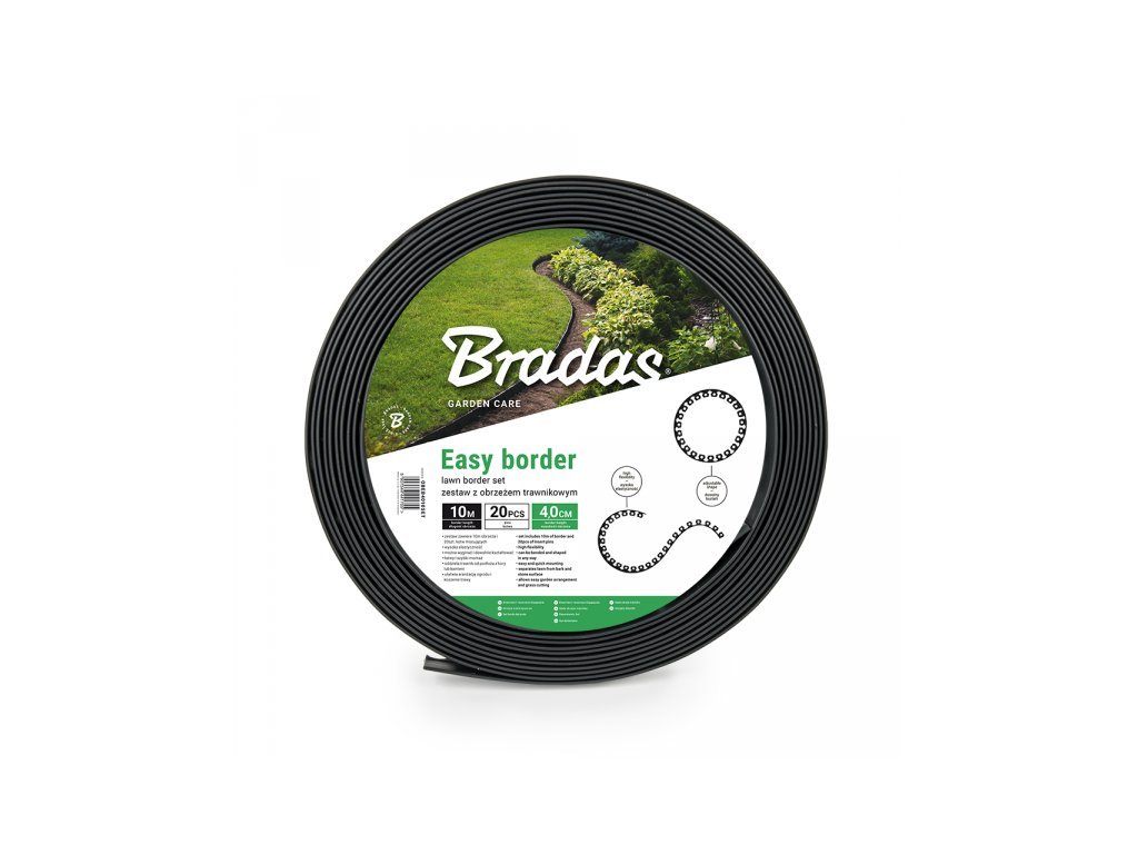 Obruba záhonů, černá, 10 m x 4 cm, 20 ks kotev - OBEB4010SET EASY BORDER SET BRADAS