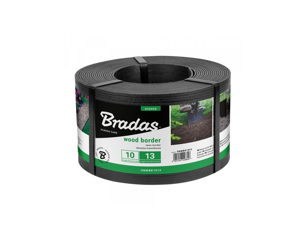 Obruba záhonů WOOD BORDER, černá 130mm x 2.8mm x 10m BRADAS
