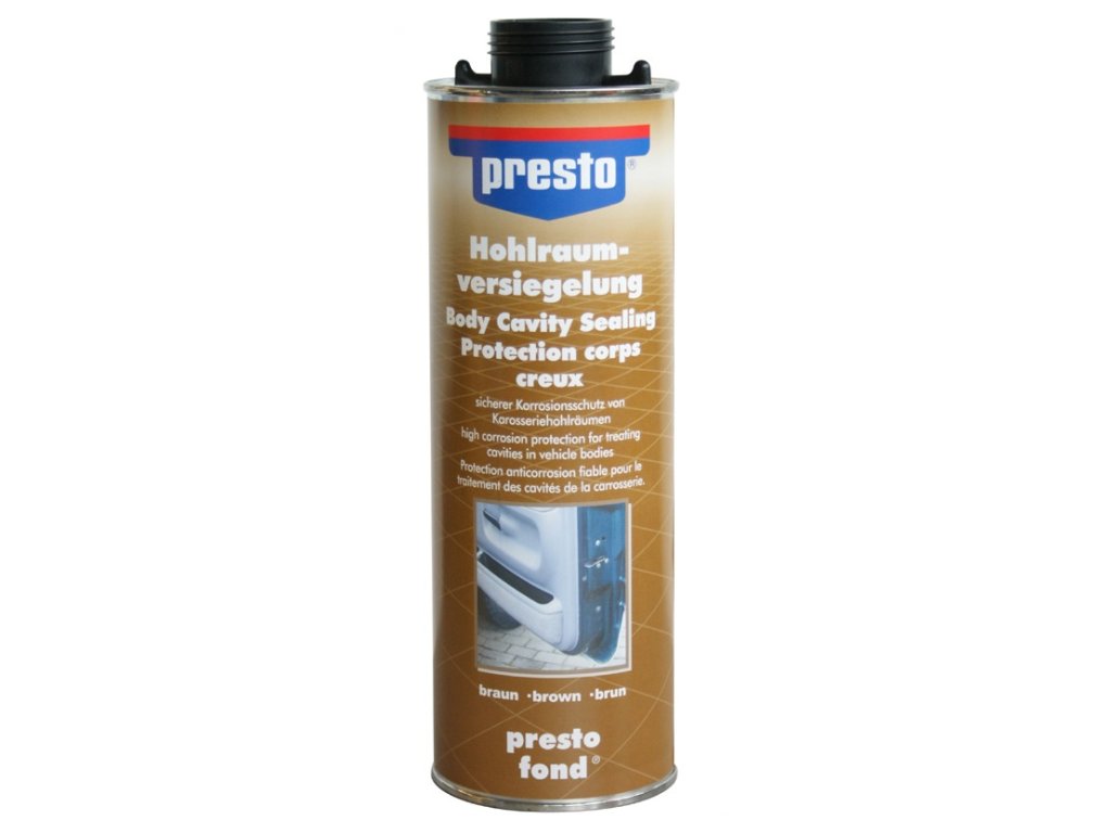 Přípravek na konzervaci – ochranu dutin karosérie auta, hnědý, na bázi vosku, 1 litr v kartuši – Presto 603277Speciální autochemie pro efektivní ochranu proti korozi v dutinách karosérií (spodní části dveří, prahy, víka kufru apod.).