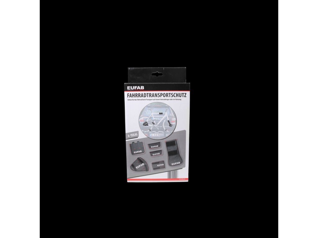 Ochrana kol při transportuPoužívá se k ochraně kol při transportu na nosiči na kola. Měkké polstrování rozprostře tlak z utažených držáků na velké ploše a chrání tak lak proti nechtěným škrábancům. Hodí se na všechny možné typy rámů. Zajišťují se suchými zipy. Výrobce: Eufab, DE