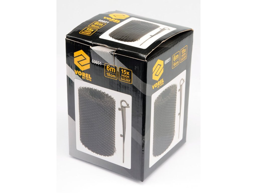 Silná ochranná síť od Vorel pro okapy. Síť proti listům je vyrobena z vysoce pevného a lehkého plastu (síť 417g + háčky). Kromě toho je vybaven 15 snadno připevnitelnými háčky pro udržení na místě. Síť je určena k ochraně okapů před listy, fólií a jinými nečistotami.