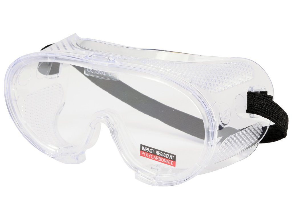 Ochranné brýle z polykarbonátu a pvc, s bočním odvětráváním a s nastavitelným nylonovým páskem.