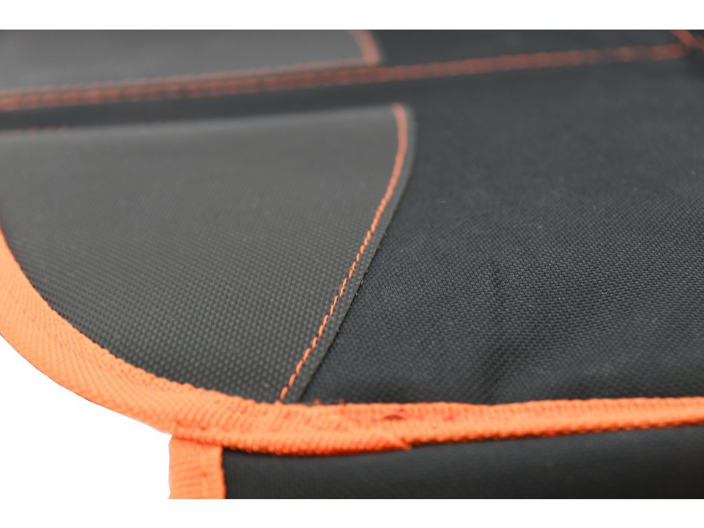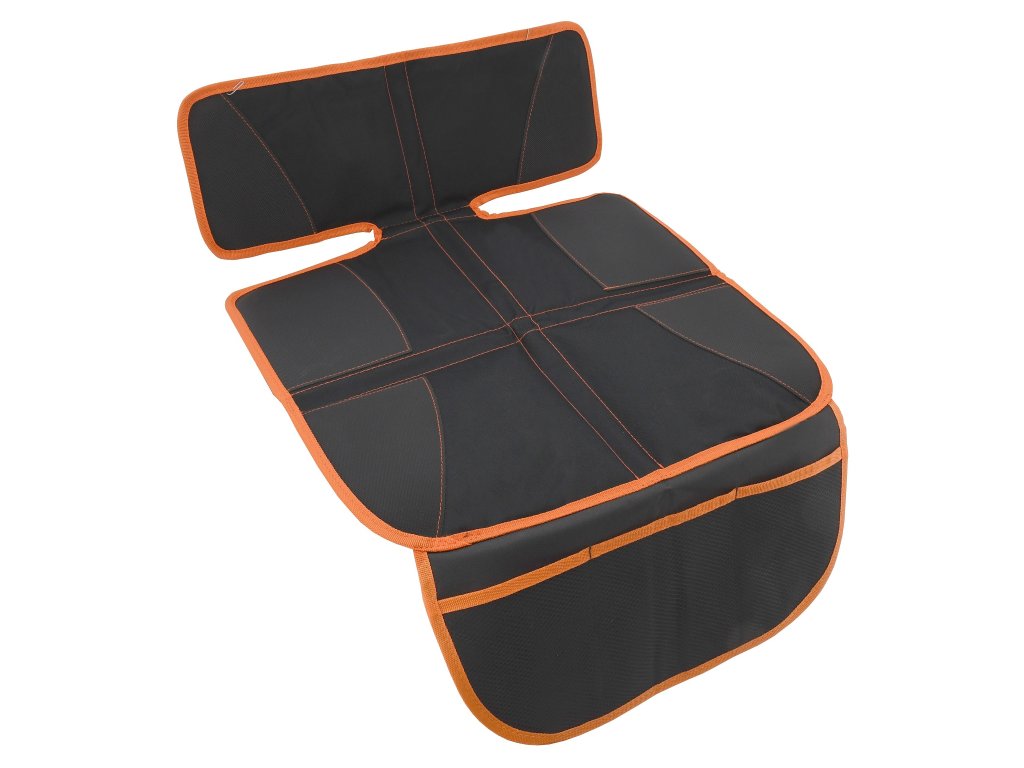 Praktický ochranný potah o rozměrech 48 x 83 cm zhotovený z odolného polyesteru, obšitého oranžovým lemem. Spodní vrstva je díky perforaci prodyšná a zároveň drží potah na místě.