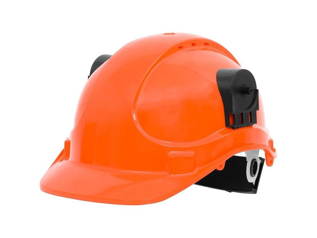 Chránič sluchu s přilbou jsou z materiálů ABS a ocel.