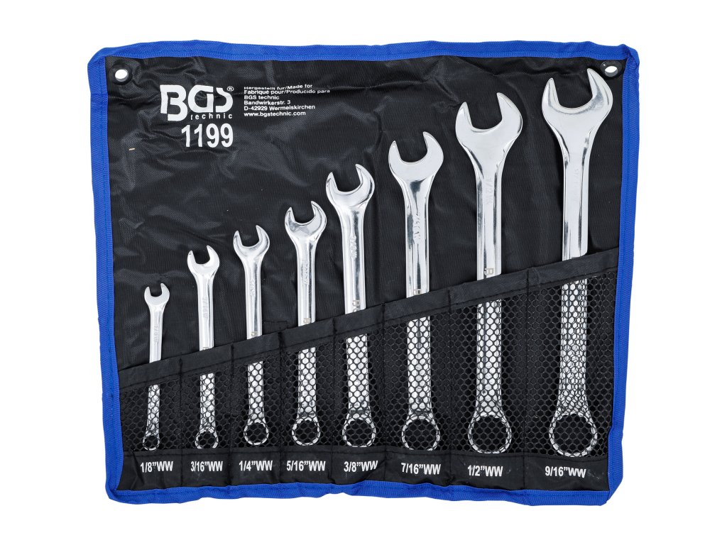 Sada očkoplochých palcových klíčů typu Whitworth, velikosti 1/8“ až 9/16“, sada 8 ks, v praktickém organizéru – BGS 1199