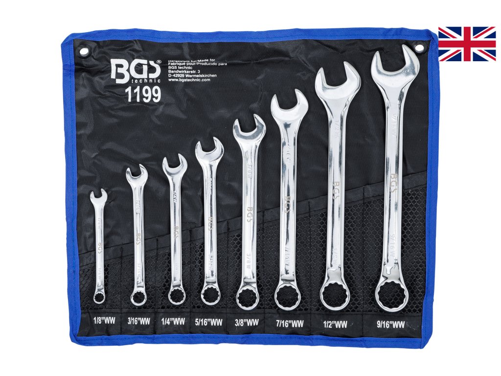 Očkoploché palcové klíče Whitworth, velikosti 1/8” až 9/16”, sada 8 ks - BGS 1199