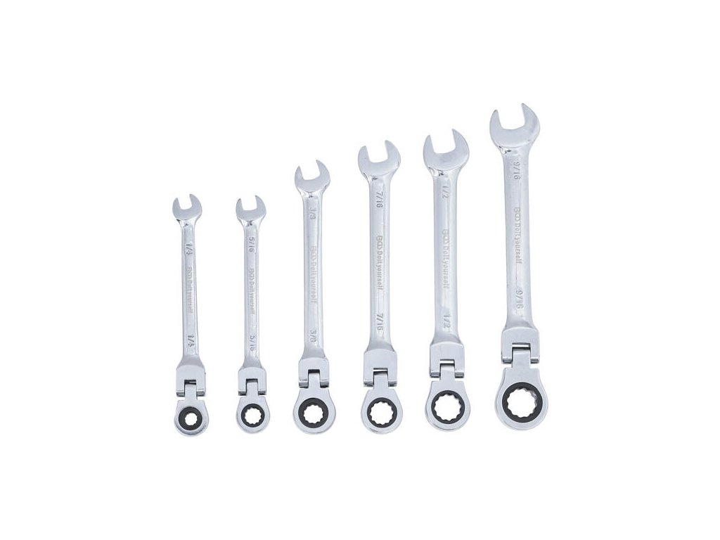 Očkoploché ráčnové klíče, palcové, s kloubem, 1/4" - 9/16", 6 ks
