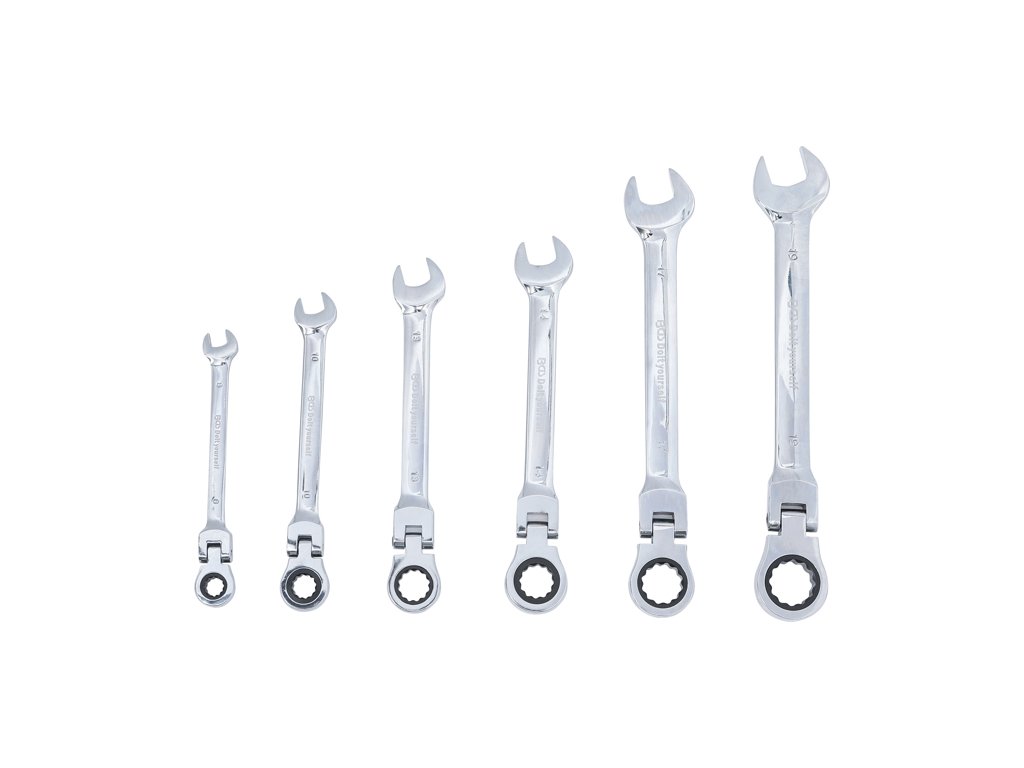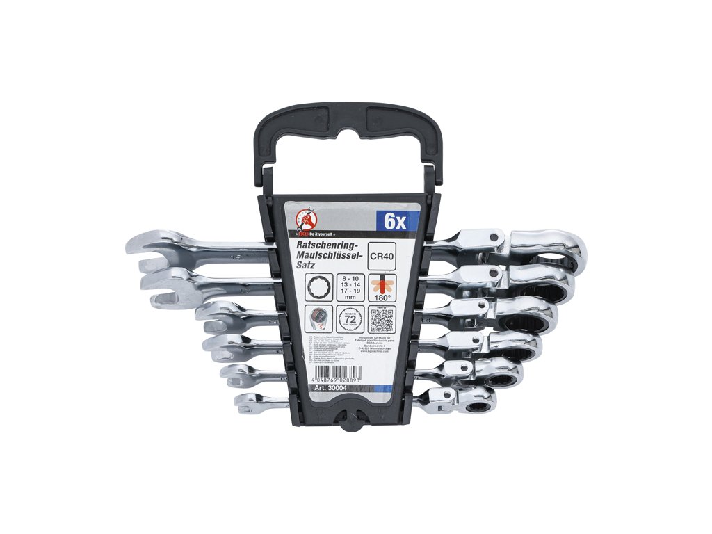 Sada kloubových (výkyvných) očkoplochých klíčů s ráčnou, rozměry 8 až 19 mm, 6 dílů v plastovém držáku - BGS do it yourself 30004