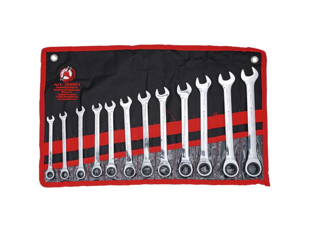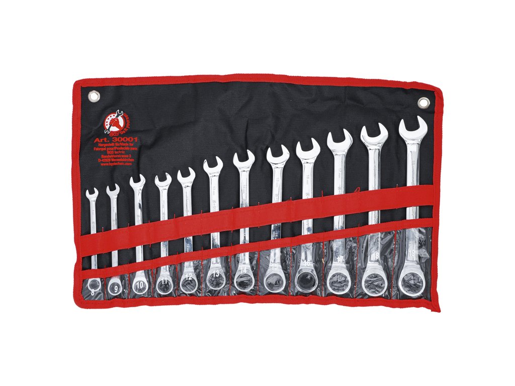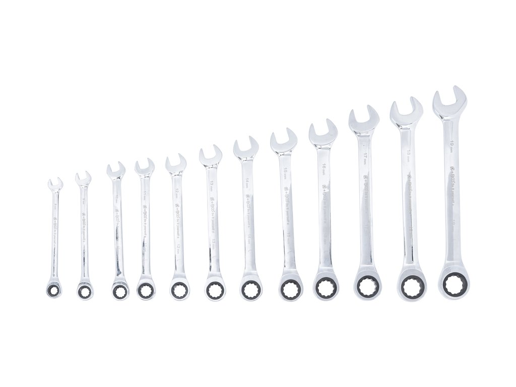 Sada oboustranných očkoplochých klíčů s ráčnou, rozměry 8 až 19 mm, 12 dílů v tetronovém obalu - BGS Do it yourself 30001
