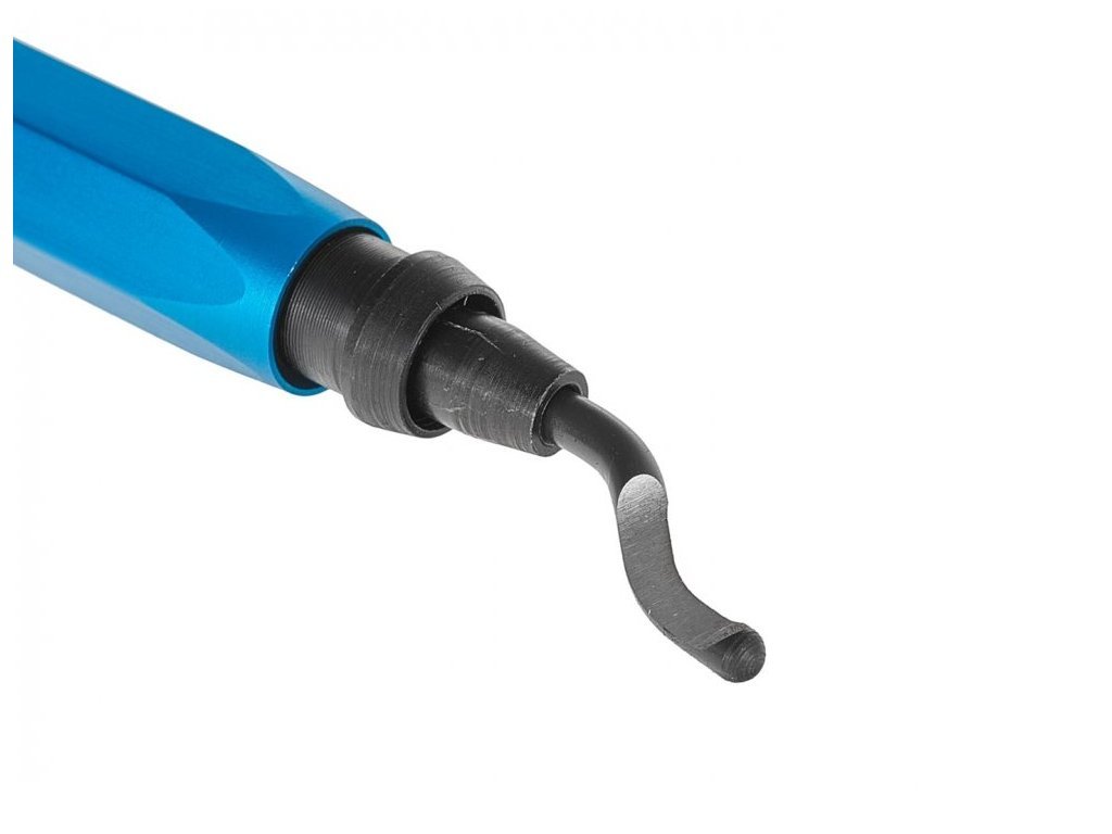 Díky kvalitní otočné čepeli z rychlořezné oceli HSS M2 (High-Speed Steel) zvládne s lehkostí odstraňovat otřepy z jakéhokoliv materiálu – kov, plast, dřevo, akryl nebo kompozity. Díky jednoduchému systému výměny čepelí lze snadno nahradit starou čepel novou a pokračovat v práci bez zbytečných prostojů.