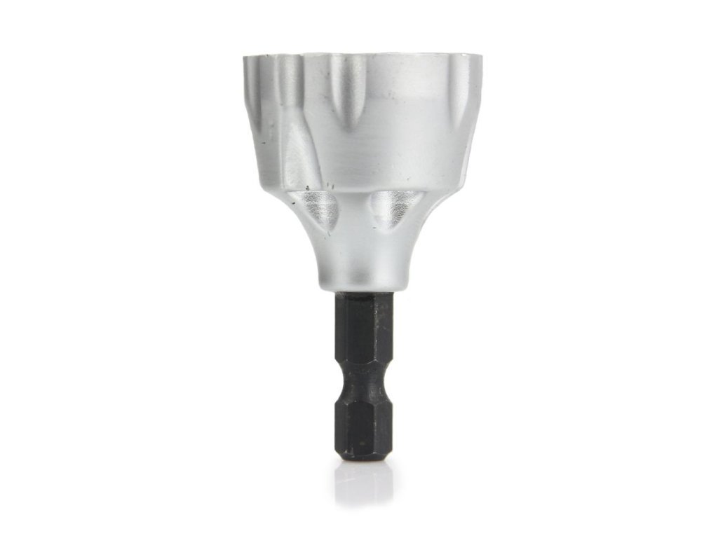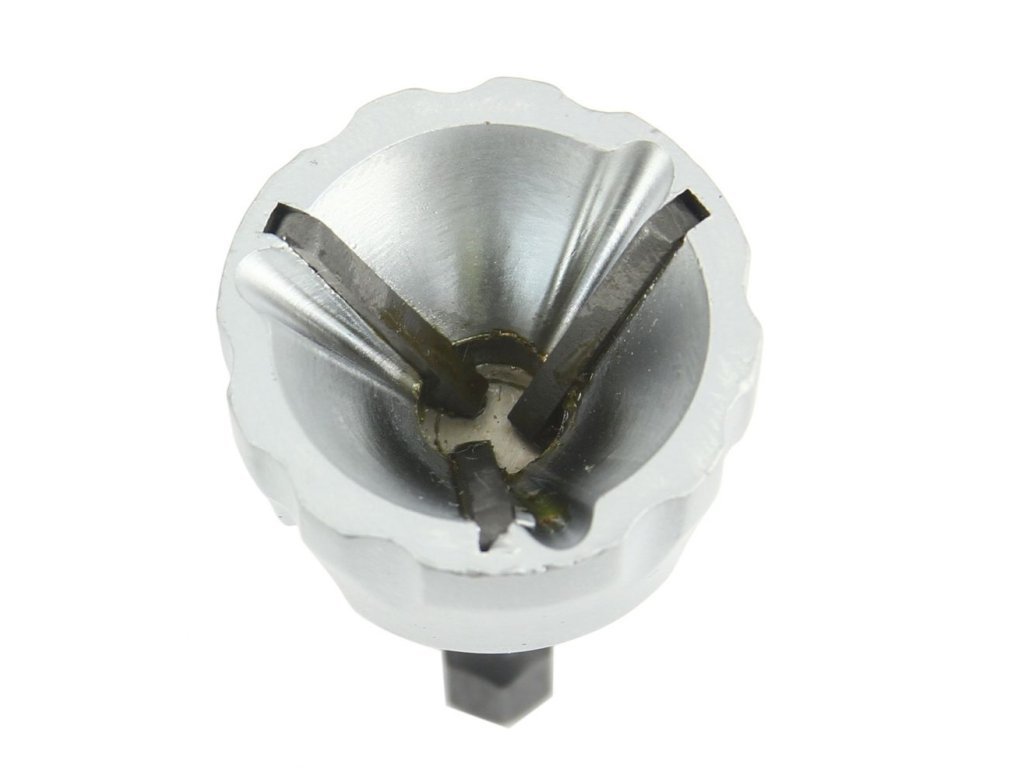 Odhrotovač a nástroj pro vnější srážení hran šroubů, tyčí a trubek o průměru 3 - 19 mm. Rychle opravíte poškozené šrouby, upravíte hranu tyče, trubky. Často dochází k poškození závitu: údery kladivem do konce spojovací tyče; řezání šroubu nebo závitové tyče; vyražení hnacího hřídele z náboje - konce závitů se trhají a drtí, čepy v kolech jejich odstraněním a opětovným nasazením. Nástavec je ideální pro odstraňování otřepů. Použitím aku vrtačky / šroubováku s nasazeným přípravkem jsme schopni připravit šroub k opětovnému použití již po několika otáčkách!