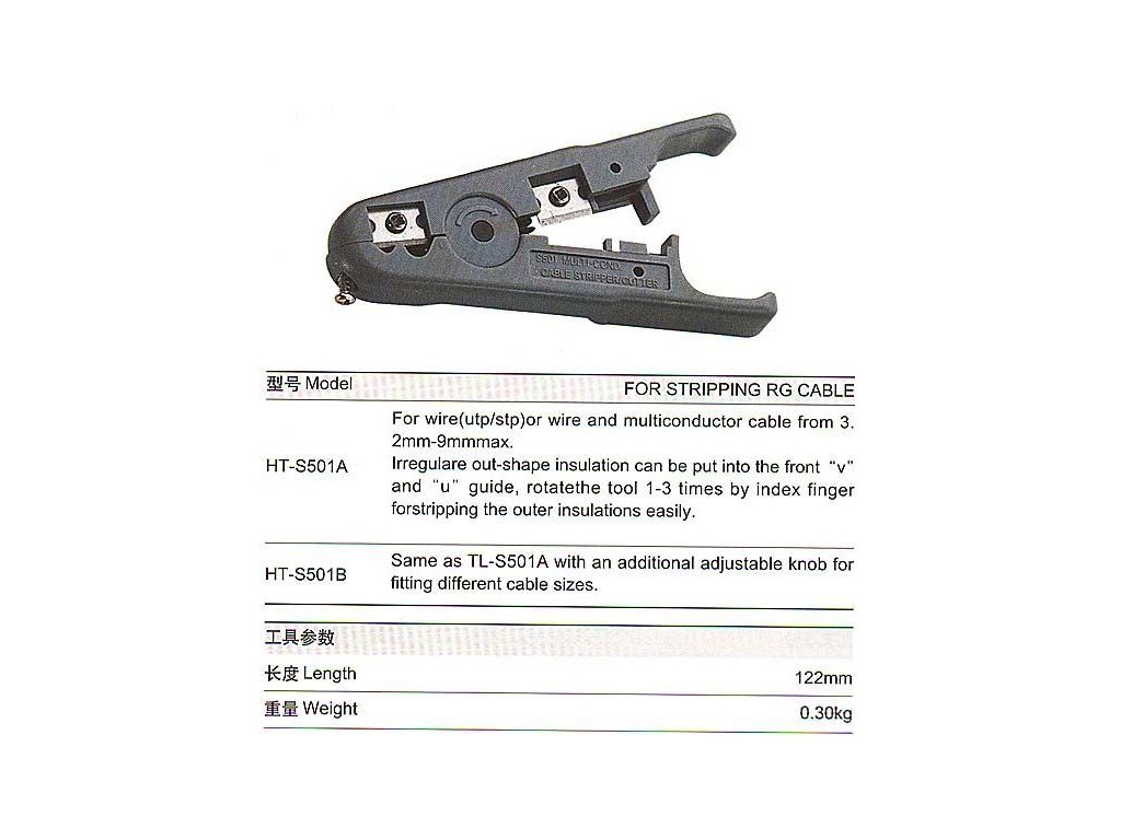 Odizolovací nůž HT-S501B na kabely do 9mm Vhodné pro jakékoli kabely do průměru 9mm (UTP,koax aj.)