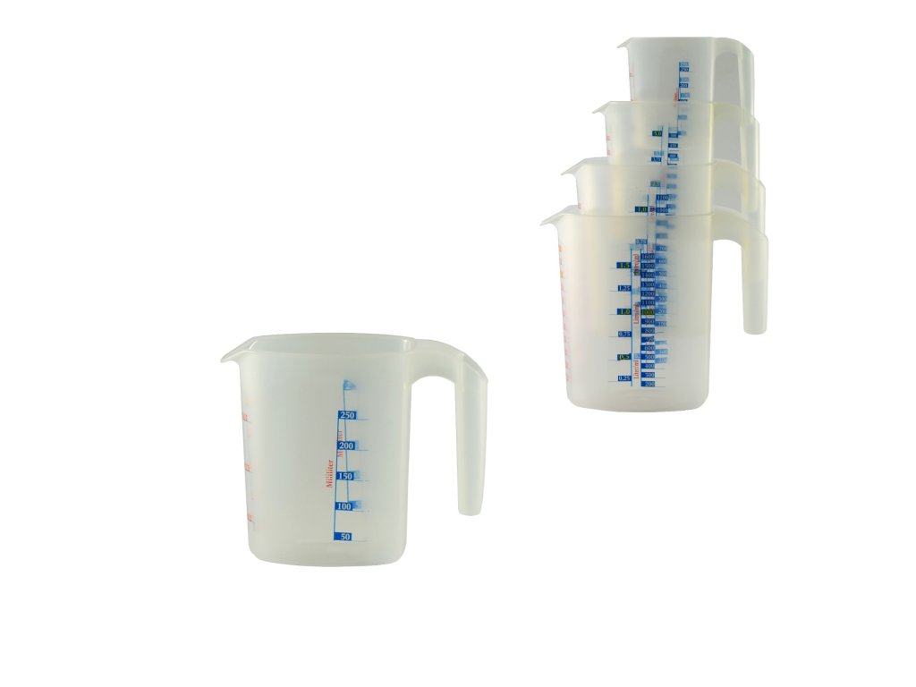 - pevná nepraskavá plastová odměrka objemu 250 ml je vhodná pro odměřování sypkých i tekutých potravin díky přehledým stupnicím- odměrka je opatřena stupnicí na vodu, cukr a mouku
