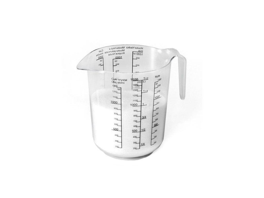 Tato plastová odměrka má měrný objem až 1500 ml.Rozměr odměrky: průměr 13cm a výška 16 cm.